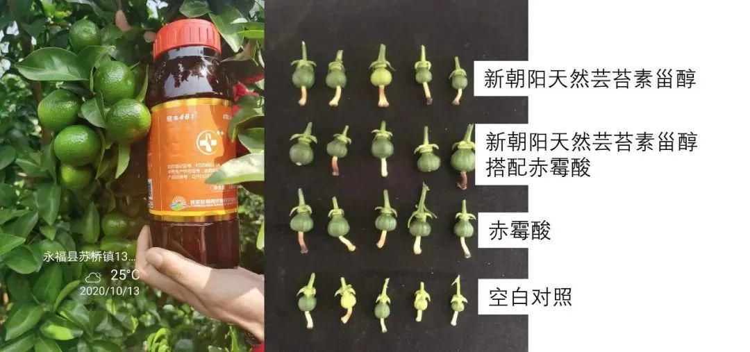 除了溫度、光照會(huì)影響果實(shí)糖分積累以外,營養(yǎng)的補(bǔ)充和調(diào)節(jié)劑的使用也決定著果實(shí)糖度和著色程度。尤其針對四川晚熟雜柑到后期氣溫慢慢的降低,普通蕓苔素吸收率利用率會(huì)大打折扣,而天然蕓苔素能提高作物的光合作用效率,在低溫下吸收利用率高,能夠低溫條件下促進(jìn)養(yǎng)分、色素和糖分的合成與積累。
